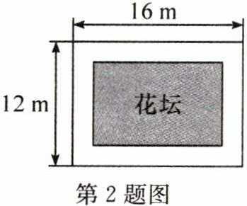 2. (2024·青岛)如图,某小区要在长为16m,宽为12m的矩形空地上建造一个花坛,使花坛四周小路的宽度相等,且花坛所占面积为矩形空地面积的一半,则小路的宽为