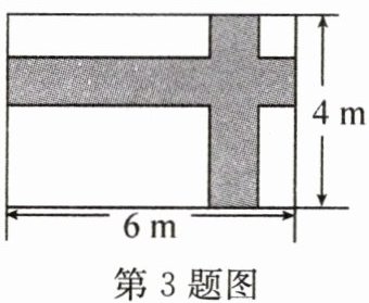 3. (教材P38习题T2变式)如图,在宽为4m,长为6m的矩形绿地上铺设两条同样宽的小路(两条小路各与矩形的一条边平行),余下部分种植小草. 若种植小草的面积为$15m^2,$则铺设的小路的宽应为