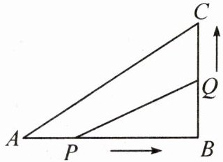 6. (教材P53习题T2变式)如图,在△ABC中,∠ABC= 90°,AB= 8cm,BC= 6cm,动点P,Q分别从点A,B同时开始移动(移动方向如图所示),点P的速度为1cm/s,点Q的速度为2cm/s,点Q移动到点C后停止,点P也随之停止运动,当△PBQ的面积为$15cm^2$时,则点P运动的时间是(