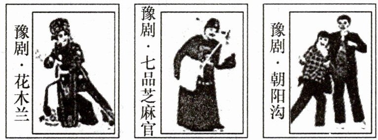 2. 新考向 传统文化 (2024·河南)豫剧是国家级非物质文化遗产,因其雅俗共赏,深受大众喜爱.正面印有豫剧经典剧目人物的三张卡片如图所示,它们除正面外完全相同.把这三张卡片背面朝上洗匀,从中随机抽取一张,放回洗匀后,再从中随机抽取一张,则两次抽取的卡片正面相同的概率为 (