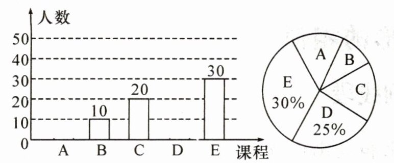 人.(3)小兰同学从B,C,D三门课程中随机选择一门参加劳动实践,小亮同学从C,D,E三门课程中随机选择一门参加劳动实践,求两位同学选择相同课程的概率为