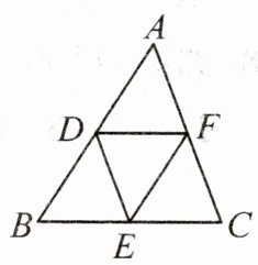 4. (教材P80例2变式)如图,在$\triangle ABC$中,$D,E,F分别为AB$,$BC$,$AC$的中点,连接$DE$,$DF$,$EF$,则$\frac {DE+EF+DF}{AC+AB+BC}$的值为