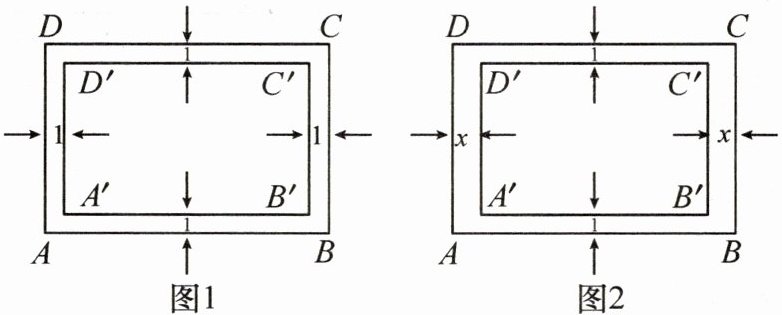 (2)如图2,当x的值为多少时,图中的矩形ABCD与矩形A'B'C'D'相似?