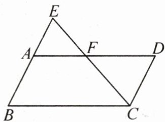 8. 如图,四边形 ABCD 是平行四边形,E 是 BA 延长线上的一点,连接 EC 交 AD 于点 F. 求证:$△BEC\backsim △DCF$.