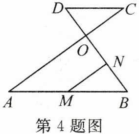 4. (2023·哈尔滨)如图,AC,BD相交于点O,$AB// DC$,M是AB的中点,$MN// AC$,交BD于点N。若$DO:OB= 1:2,AC= 12$,则MN的长为(