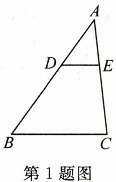 1. 如图,在$\triangle ABC$中,点D,E分别在边AB,AC上。若$DE// BC,\frac {AD}{DB}= \frac {2}{3},DE= 6cm$,则BC的长为(