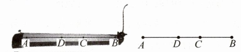 7. (2023·达州)如图,乐器上的一根弦AB= 80cm,两个端点A,B固定在乐器面板上,支撑点C是靠近点B的黄金分割点,支撑点D是靠近点A的黄金分割点,则支撑点C,D之间的距离为