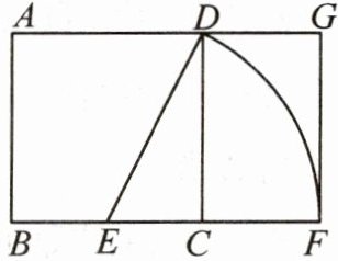 6. (2023·绵阳)黄金分割由于其美学性质,受到摄影爱好者和艺术家的喜爱.摄影中有一种拍摄手法叫黄金构图法,其原理是:如图,在正方形ABCD的底边BC上取中点E,以点E为圆心,线段DE为半径作圆,其与底边BC的延长线相交于点F,这样就把正方形ABCD延伸为矩形ABFG,称其为黄金矩形(宽与长的比等于$\frac {\sqrt {5}-1}{2}$的矩形叫作黄金矩形).若CF= 4a,则AB= (