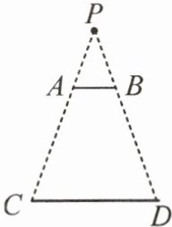 8. 如图,光源$P在横杆AB$的正上方,$AB在灯光下的影子为CD$,$AB // CD$,$AB= 2m$,$CD= 6m$,点$P到CD的距离是2.7m$,则$AB与CD$的距离为