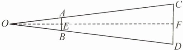 7. (教材P108习题T2变式)如图所示的是步枪在瞄准时的示意图,从眼睛到准星的距离$OE为80cm$,步枪上的准星宽度$AB为0.2cm$,目标的正面宽度$CD为50cm$,则眼睛到目标的距离$OF$是 (