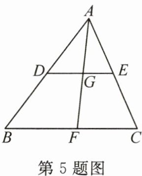 5. 如图,在$\triangle ABC$中,$D$,$E分别是AB$,$AC$的中点,$\angle BAC的平分线分别交DE$,$BC于点G$,$F$,则$AG:AF$的值为