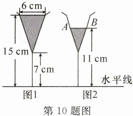 10. 新考向 真实情境 图1是装了液体的高脚杯示意图(数据如图),用去一部分液体后如图2所示,此时液面$AB= $ (