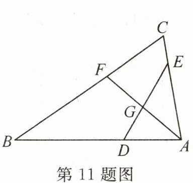 11. 如图,在$\triangle ABC$中,点$D$,$E分别在AB$,$AC$上,$AF平分\angle BAC交DE于点G$。若$AE= 3$,$EC= 1$,$AD= 2$,$BD= 4$,则$AG:AF$的值为