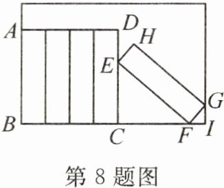 8. 新考向 真实情境 有五本形状为长方体的书放置在方形书架中,如图所示,其中四本竖放,第五本斜放,点$G$正好在书架边框上。若每本书的厚度为$5cm$,高度为$20cm$,书架宽为$40cm$,则$FI$的长为