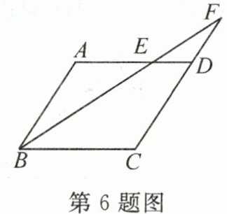 6. 如图,$E是□ ABCD的边AD$上的一点,且$\frac{DE}{AE} = \frac{1}{2}$,连接$BE并延长交CD的延长线于点F$。若$DE = 3$,$DF = 4$,则$□ ABCD$的周长为
