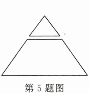 5. 如图,将腰长为$12cm$的等腰三角形纸片,沿与底边平行的方向剪去一个小的等腰三角形纸片,剩下一个等腰梯形纸片。若剪去纸片面积是剩下的纸片面积的$\frac{1}{8}$,则剪去等腰三角形纸片的腰长为