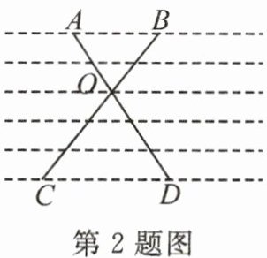 2. 如图,顽皮的小聪在小芳的作业本上画了一个“×”(作业本中的横格线都平行,且相邻两条横格线间的距离都相等),点$A$,$B$,$C$,$D$,$O$都在横格线上,且线段$AD$,$BC交于点O$。若线段$AB = 4cm$,则线段$CD$的长为(