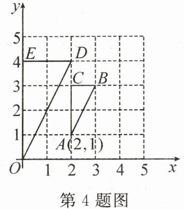 4. 如图,在平面直角坐标系中,△ABC与△ODE是位似图形,则它们位似中心的坐标是