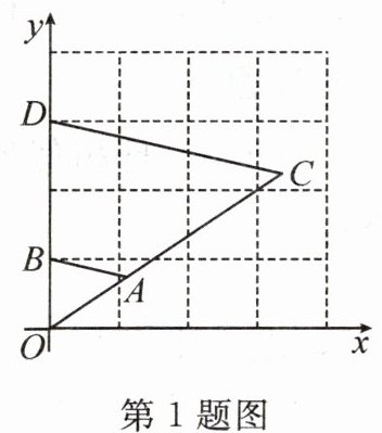 1. 如图,在平面直角坐标系中,将△OAB以原点O为位似中心放大后得到△OCD.若B(0,1),D(0,3),则△OAB与△OCD的相似比是(
