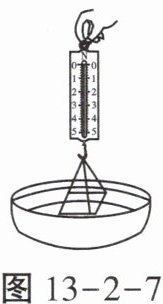 10. 如图13-2-7所示,把干净的玻璃板吊在弹簧测力计的下面,读出弹簧测力计的示数。使玻璃板水平接触水面,然后稍稍用力向上拉玻璃板,弹簧测力计的示数