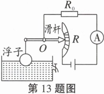 13.(2024 武汉)如图所示是一种测定油箱内油量的装置,其中R是滑动变阻器的电阻片,杠杆的右端是滑动变阻器的滑片,杠杆的左端固定着一个浮子,油箱内油量变化时,滑片就在电阻片R的两端之间滑动。下列说法错误的是(