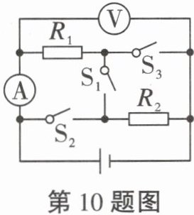 10.如图所示,电源电压恒定,先只闭合开关$S_1,$两电表均有示数;再断开$S_1,$同时闭合$S_2$和$S_3,$此过程中(