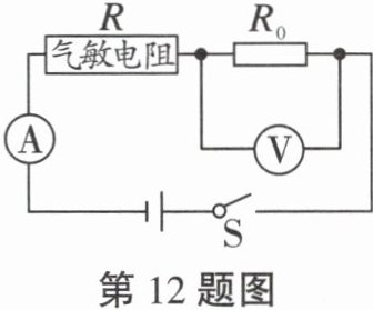 12.(2024 黑龙江)天然气是一种清洁能源,方便居民使用的同时,存在着泄漏的安全隐患。物理兴趣小组在老师的指导下设计了天然气泄漏检测电路,如图所示,电源电压恒定不变,R₀为定值电阻,R为气敏电阻。若R阻值随天然气浓度的增大而减小,则天然气(
