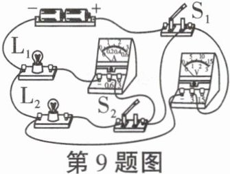 9.如图所示的电路,电源电压不变,闭合$S_1$和$S_2,$灯泡$L_1$和$L_2$均能正常发光,电流表和电压表均有示数。下列分析错误的是(