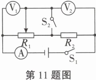 11.(2024 南开中学期中)如图所示的电路,电源电压保持不变,只闭合$S_1,$滑动变阻器的滑片向右移动,下列说法中正确的是$(