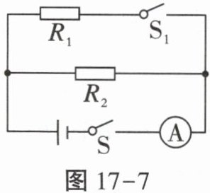 所示的电路$,R_1= 10Ω,$只闭合开关S,电流表示数为0.15A;再闭合开关$S_1,$电流表示数变化了0.3A,则通过$R_1$的电流为