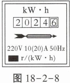 7.(2024绥化)如图18-2-8所示为家庭电路的电能表,该电能表允许接入用电器的最大总功率是______W;表盘上的某个参数模糊不清,为测得这个参数,仅将额定功率为1200W的空调接入电路,正常工作1min电能表转盘转了60转,计算可知该参数为______r/(kW·h)。