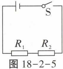 4. 如图18-2-5所示的电路,定值电阻$R_{1}= 2R_{2}$。开关闭合后,电阻$R_{1}$、$R_{2}两端的电压分别为U_{1}$、$U_{2}$,通过的电流分别为$I_{1}$、$I_{2}$,电功率分别为$P_{1}$、$P_{2}$,相同时间内做的功分别为$W_{1}$、$W_{2}$。下列结论正确的是(