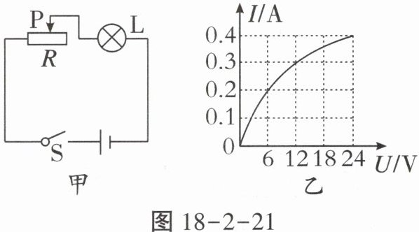 11.如图甲所示的电路,电源电压保持不变,小灯泡L的额定电压为24V,当把滑动变阻器R的滑片P滑到最左端时,小灯泡恰好正常发光。如图乙所示为通过灯泡L的电流与其两端电压的关系图像,当小灯泡正常发光时,灯丝的电阻为