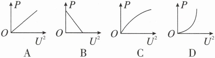 (5)①小华同学根据实验测量结果绘制该小灯泡的电功率P与它两端的电压平方$U^2$的关系图像。下列图像正确的是_____。