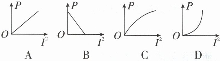 ②小华同学又绘制了该小灯泡的电功率P与通过它的电流平方$I^2$的关系图像。下列图像正确的是_____。