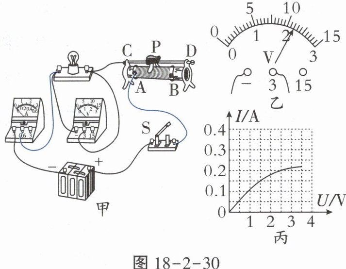 (1)将图18-2-30甲中的实物电路补充完整(要求:滑片P向右移动时电压表示数减小)。( )
