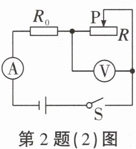 W。(2)如图所示的电路,电源电压保持不变,闭合开关S,调节滑动变阻器R的滑片,电流表的示数从0.2A变为0.6A,电压表的示数从14V变为2V。定值电阻$R_{0}$的阻值为30