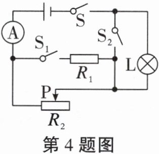 4.如图所示,电源电压为12V且保持不变,灯泡L标有“6V 6W”的字样。滑动变阻器$R_{2}$的最大阻值为40Ω。(不考虑温度对灯泡电阻的影响)(1)求灯泡L的电阻;(2)当开关S闭合,$S_{1}$、$S_{2}$断开,滑动变阻器$R_{2}$接入电路的电阻为18Ω时,求灯泡L两端的电压;(3)当开关S、$S_{1}$、$S_{2}$都闭合,将滑动变阻器的滑片P移到最右端时,电流表的示数为1.5A,求此时$R_{1}$消耗的电功率。