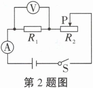 2. 如图所示的电路,电源电压恒为6V,电流表的量程为0~0.6A,电压表的量程为0~3V,定值电阻$R_1$的阻值为10Ω,滑动变阻器$R_2$的规格为“20Ω 1A”。闭合开关S,在确保电路安全的前提下,移动滑动变阻器的滑片P,下列说法正确的是 (