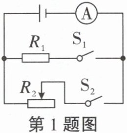 1. 如图所示的电路,电源电压恒为9V,$R_1$的阻值为20Ω,滑动变阻器$R_2$标有“100Ω 1A”字样,电流表接0~0.6A的量程。在探究过程中至少有一个开关闭合,调整开关$S_1$、$S_2的状态及R_2$接入电路的阻值大小,在保证电路安全的前提下,下列结论正确的是 (