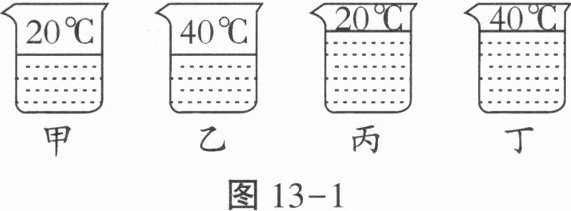 2. 四个相同规格的烧杯中装有水,水量及其温度如图13-1所示,其中甲与乙中的水质量相同,丙与丁中的水质量相同。关于四个烧杯中水的内能的大小,下列说法中正确的是 (