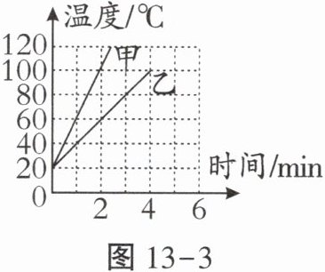 8. 规格相同的容器(忽略其吸热)装了相同质量的同种液体,用不同的加热器加热,忽略热损失,得到如图13-3所示的液体温度与加热时间的图像。下列说法正确的是(