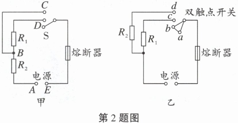 (1)由图可知,当开关S接D时,$R_1$、$R_2$串联,电路电阻较大,为低温挡;