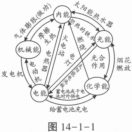 )A.燃料燃烧:机械能转化为内能B.钻木取火:化学能转化为热能C.光合作用:光能转化为化学能D.水力发电:内能转化为电能