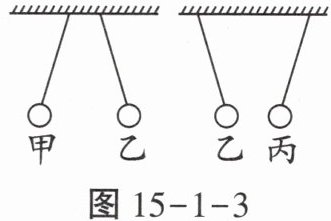 (2)(2024东营)甲、乙、丙三个轻质小球用绝缘细线悬挂,相互作用情况如图15-1-3所示。若丙带负电,则甲(