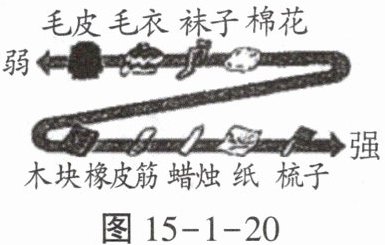 8.如图15-1-20所示是部分不同物质的原子核对电子束缚能力强弱的排序图,毛皮与图中的