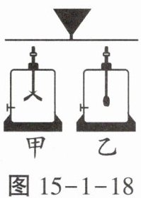 7.(1)取两个相同的验电器甲和乙,使甲带电,乙不带电。如图15-1-18所示,可以看到甲的金属箔片张开,乙的金属箔片闭合,用金属棒把甲和乙连接起来,会发现验电器金属箔片的张角(