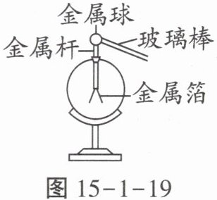 (2)(2024巴中)如图15-1-19所示,用丝绸摩擦过的玻璃棒接触不带电的验电器,金属箔张开。下列说法正确的是(