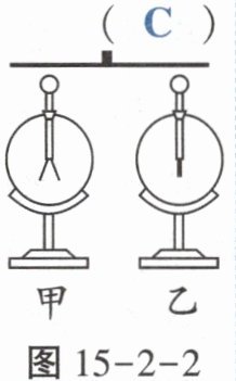 2.如图15-2-2所示,取两个完全相同的验电器甲和乙,使甲带负电荷,乙不带电。下列分析错误的是(