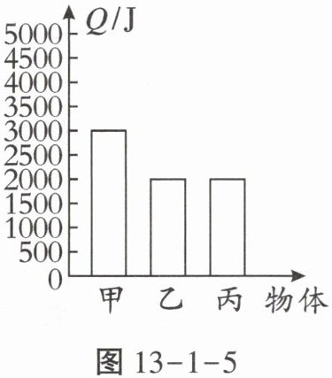 8. 甲、乙两物体质量都为1kg,丙物体质量为2kg,三个物体温度都升高1℃,吸收热量如图13-1-5所示。下列说法正确的是(